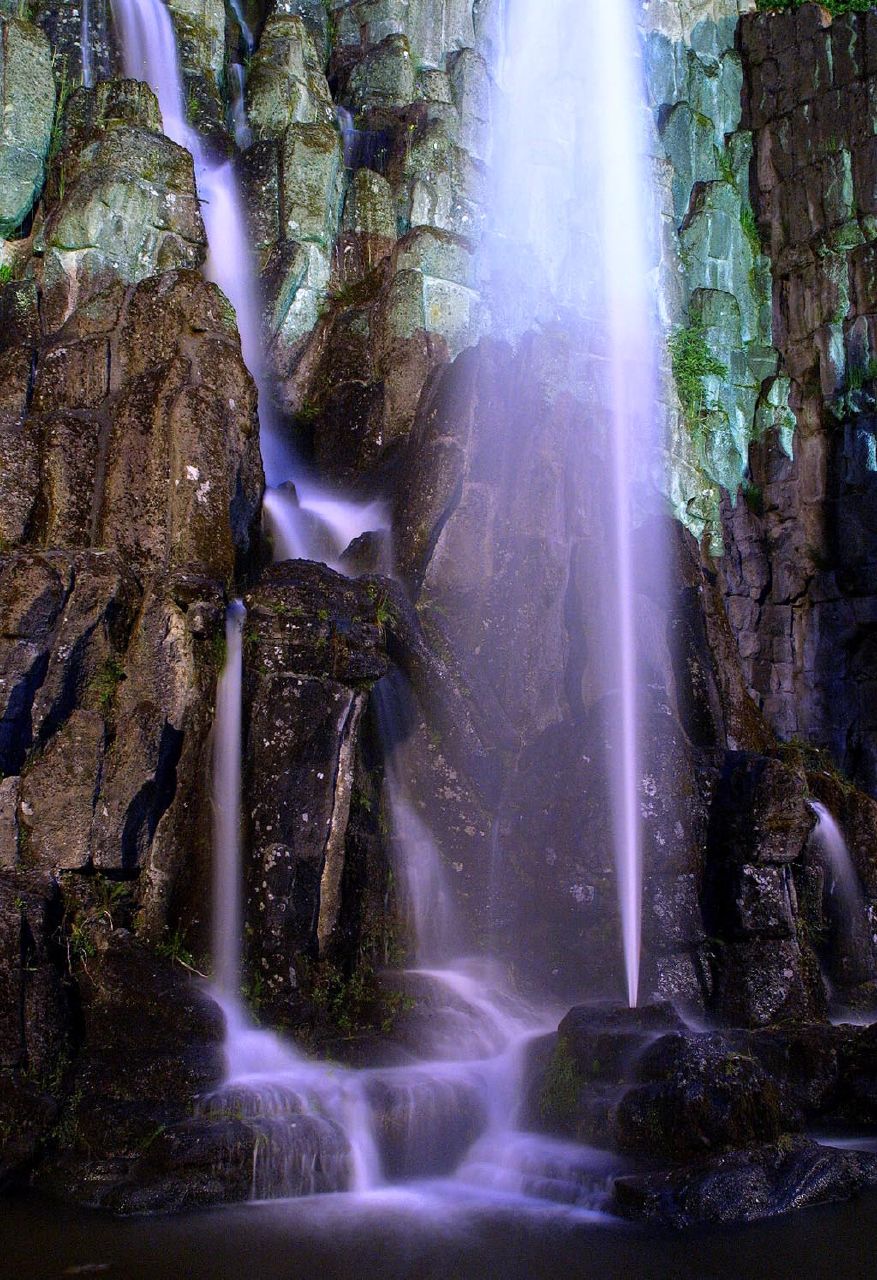 Nachtaufnahme während der nächstlichen beleuchteten Wasserspiele am Herkules
