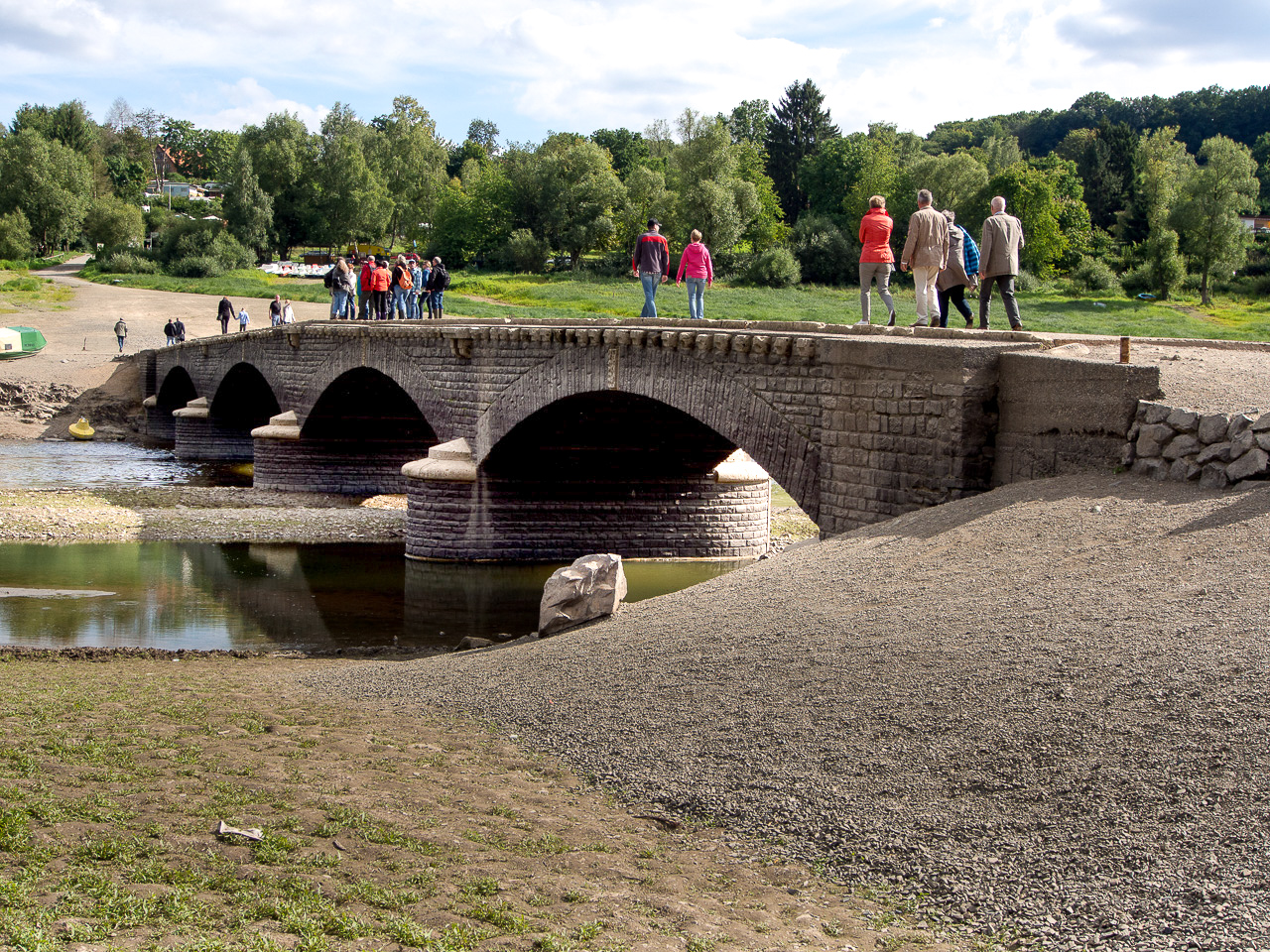 Niedrigwasser am Edersee - die Brücke bei Asel