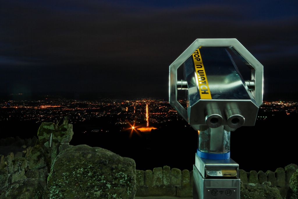 Blick auf das nächtliche Kassel vom Herkules aus.