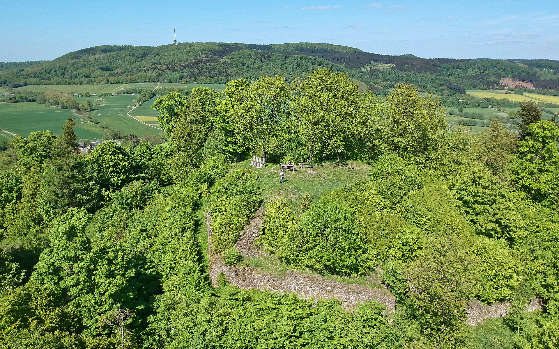 Der Gipfel des Burgberges bei Schauenburg-Hoof mit den Mauern der alten Burgruine.