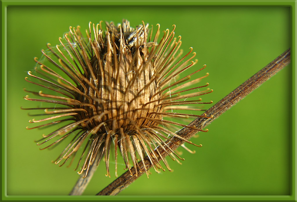 Makroaufnahme einer Klette.