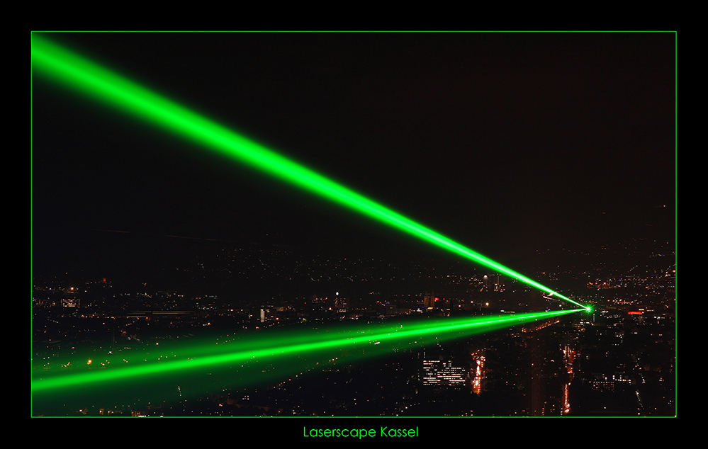 Premiere der neuen Laser-Installation "Laserscape Kassel" des Künstlers Horst H. Baumann.