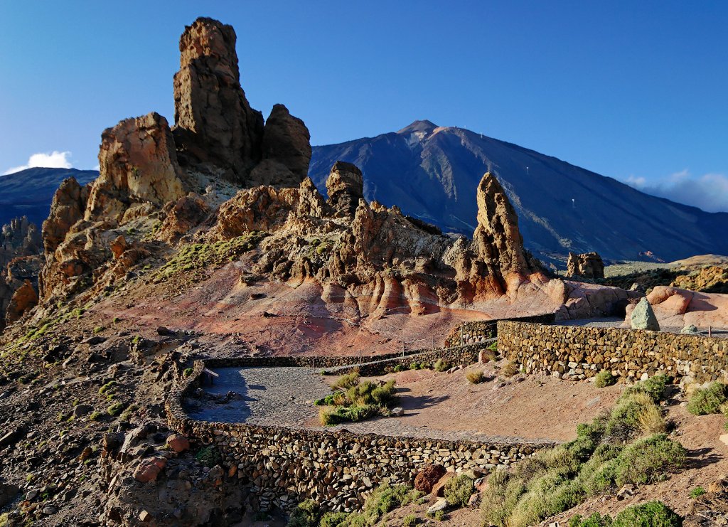 Teile der Felsformationen "Roques de García" im Licht der abendlichen Sonne in der Nähe des Parador im Teide-Nationalpark. Canon 10 D mit Sigma 10-20 mm.