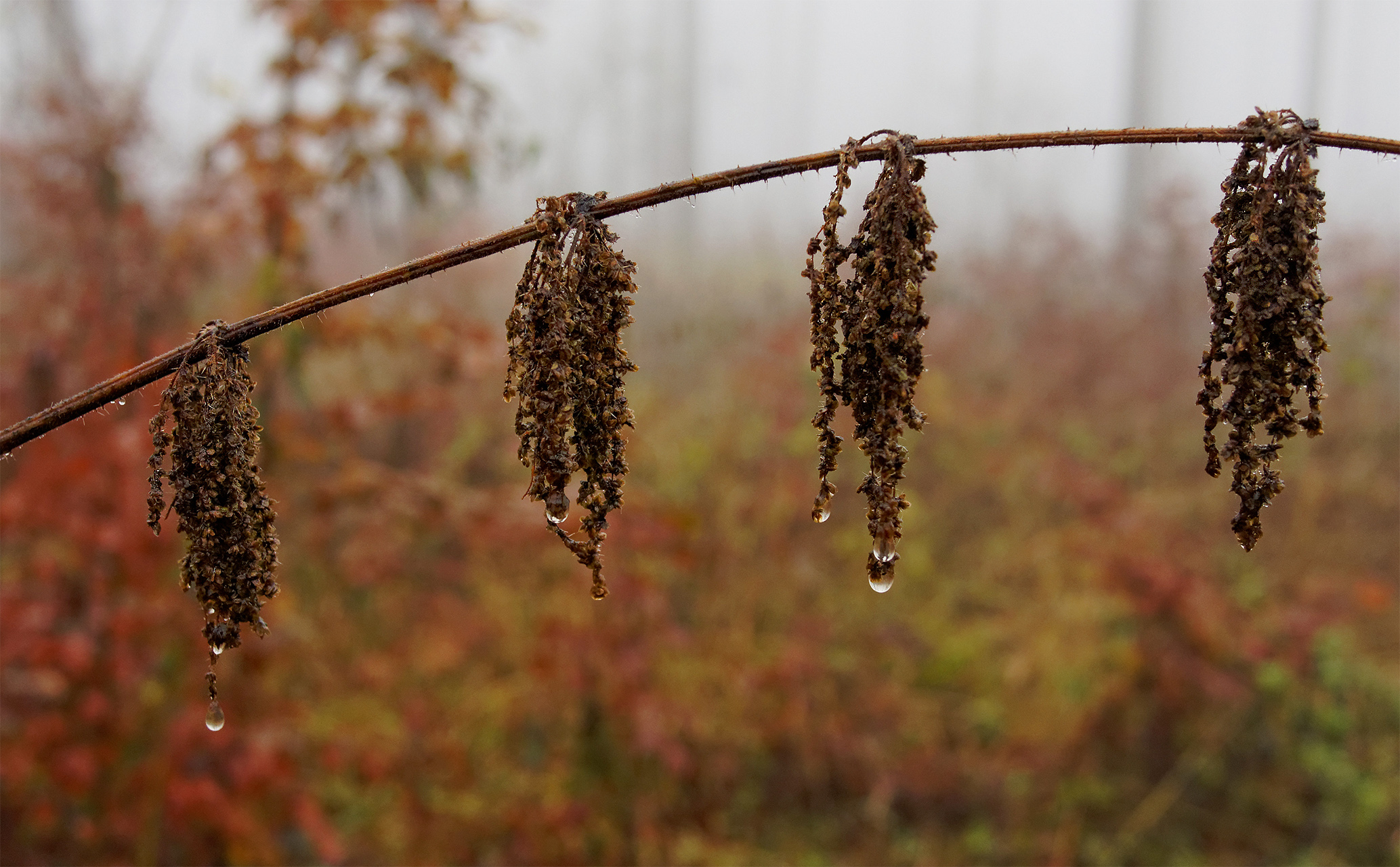 feuchtfröhlicher Waldspaziergang im Nebel, ein Detail am Wegesrand nähe Hohes Gras im Habichtswald / Kassel - Nordhessen.