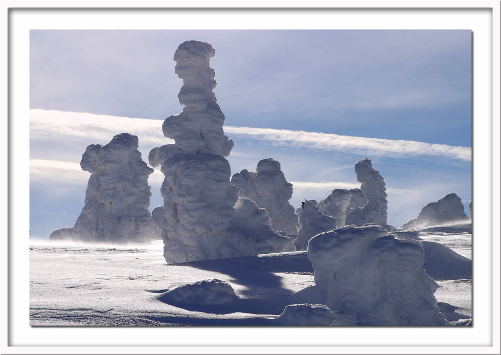 Impression von einem Ausflug auf dem Brocken im Harz - es war traumhaftes Winterwetter mit blauem Himmel. Die Bäume verwandelten sich in groteske Schnee-Skulpturen, man konnte alle möglichen Figuren erkennen, fast jeder der vorbeikommenden Wandersleute hatte eine andere Interpretation des Gesehenen.