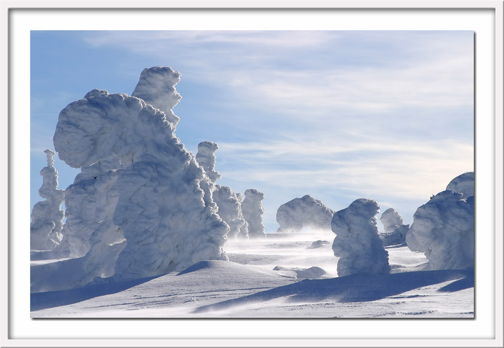 Impression von einem Ausflug auf dem Brocken im Harz - es war traumhaftes Winterwetter mit blauem Himmel. Die Bäume verwandelten sich in groteske Schnee-Skulpturen, man konnte alle möglichen Figuren erkennen, fast jeder der vorbeikommenden Wandersleute hatte eine andere Interpretation des Gesehenen.