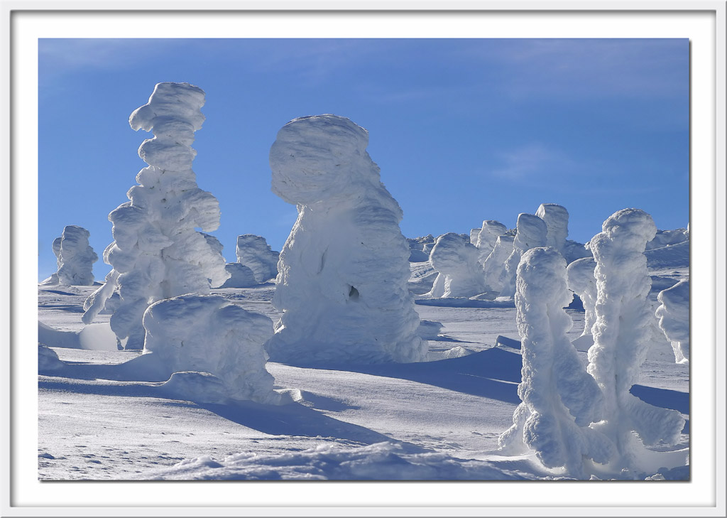 Impression von einem Ausflug auf dem Brocken im Harz - es war traumhaftes Winterwetter mit blauem Himmel. Die Bäume verwandelten sich in groteske Schnee-Skulpturen, man konnte alle möglichen Figuren erkennen, fast jeder der vorbeikommenden Wandersleute hatte eine andere Interpretation des Gesehenen.