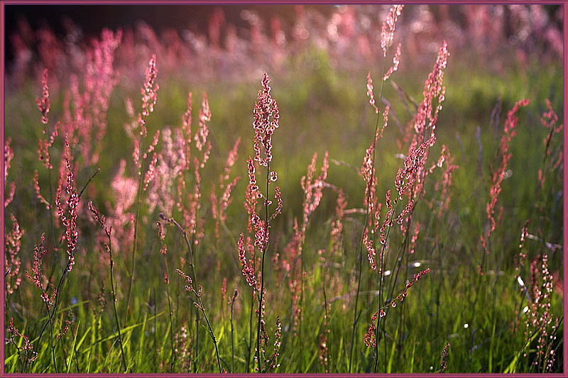 der Gräser auf einer Waldwiese im Gegenlicht. Canon D30, 1/180s - Blende 5,6 - Brennweite 100mm - Abendlicht.