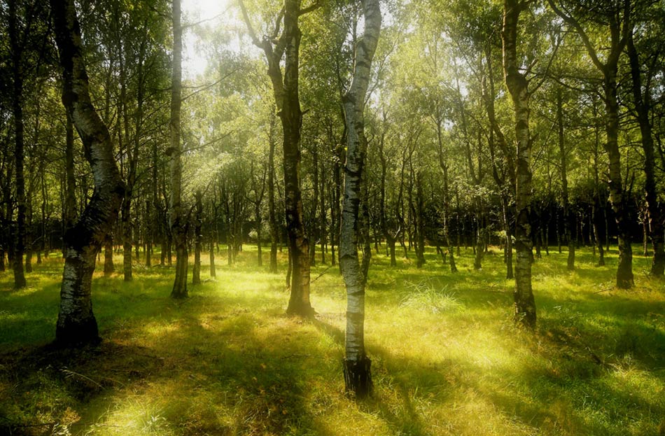 Ein lichtdurchfluteter Birkenwald im Reinhardswald / Nordhessen.