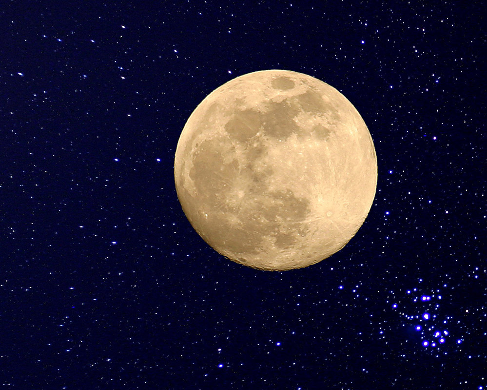 echte Astro-Freunde mögen mir verzeihen, dies ist eine Montage aus zwei Fotos: einmal der Sternenhimmel und als zweites der Mond. In Photoshop zusammengebaut.