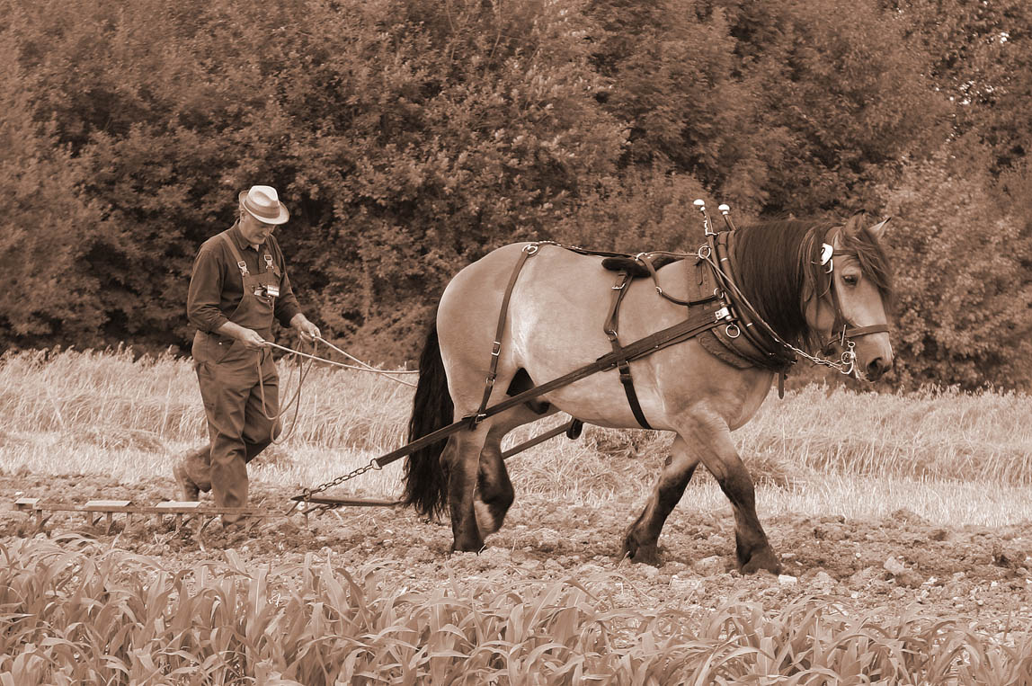 harte Arbeit hatten hier Pferd und Bauer bei der Bestellung des Feldes.