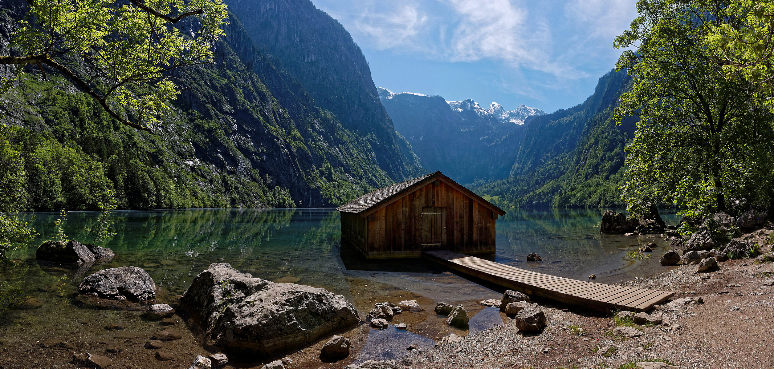 Von der Bootsanlegestelle Salet am Südende des Königssees führt ein breiter Wanderweg zur Berggaststätte Saletalm. Nach dem Gasthaus überquert der Weg einen Bach und führt flach weiter in Richtung Obersee. Eine traumhaft schöne Landschaft!