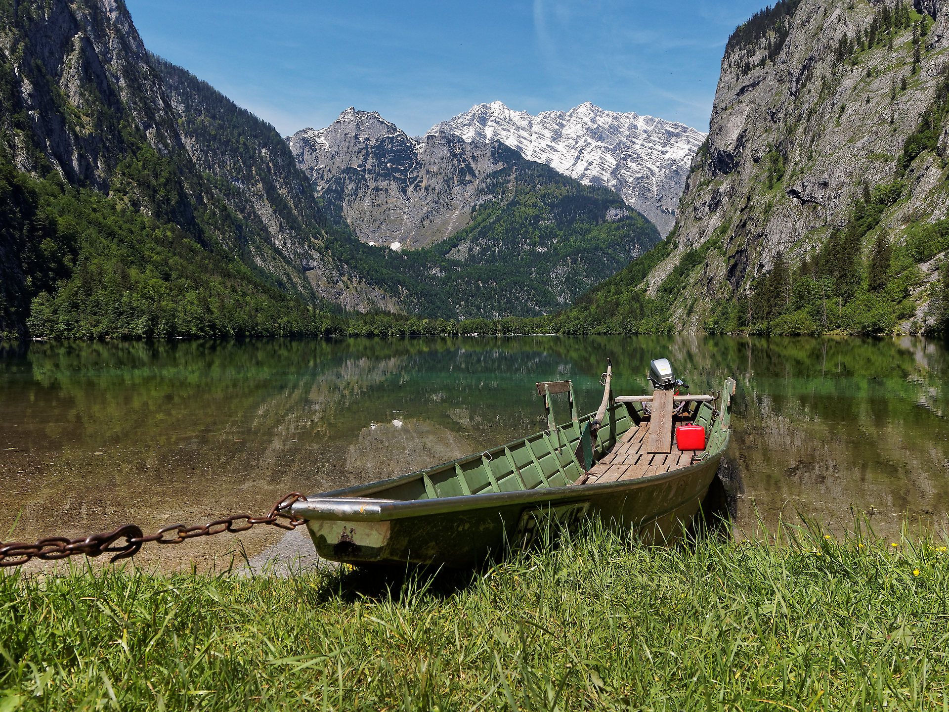 Blick von der Fischunkelalm auf den Obersee, südlich des Königssees gelegen und über einen schmalen Steig von der Saletalm aus gut erreichbar. Eine traumhaft schöne Landschaft!
