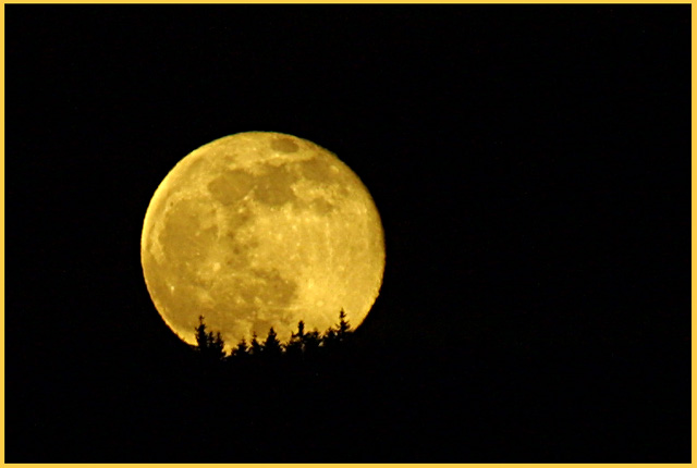Der Mond Und grämt dich, Edler, noch ein Wort Der kleinen Neidgesellen? Der hohe Mond, er leuchtet dort, Und läßt die Hunde bellen Und schweigt und wandelt ruhig fort, Was Nacht ist, aufzuhellen. Johann Gottfried Herder - Foto des aufgehenden Vollmondes am 29.1.2002, direkt über dem Horizont. Brennweite 480mm, 1/90 sek, Blende 11. Auschnitt und Rahmen mit Photoshop.