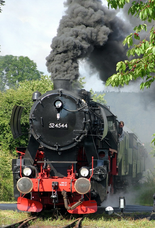 Naumburger Kleinbahn auf Bergfahrt bei der Einfahrt in den Bahnhof Hoof