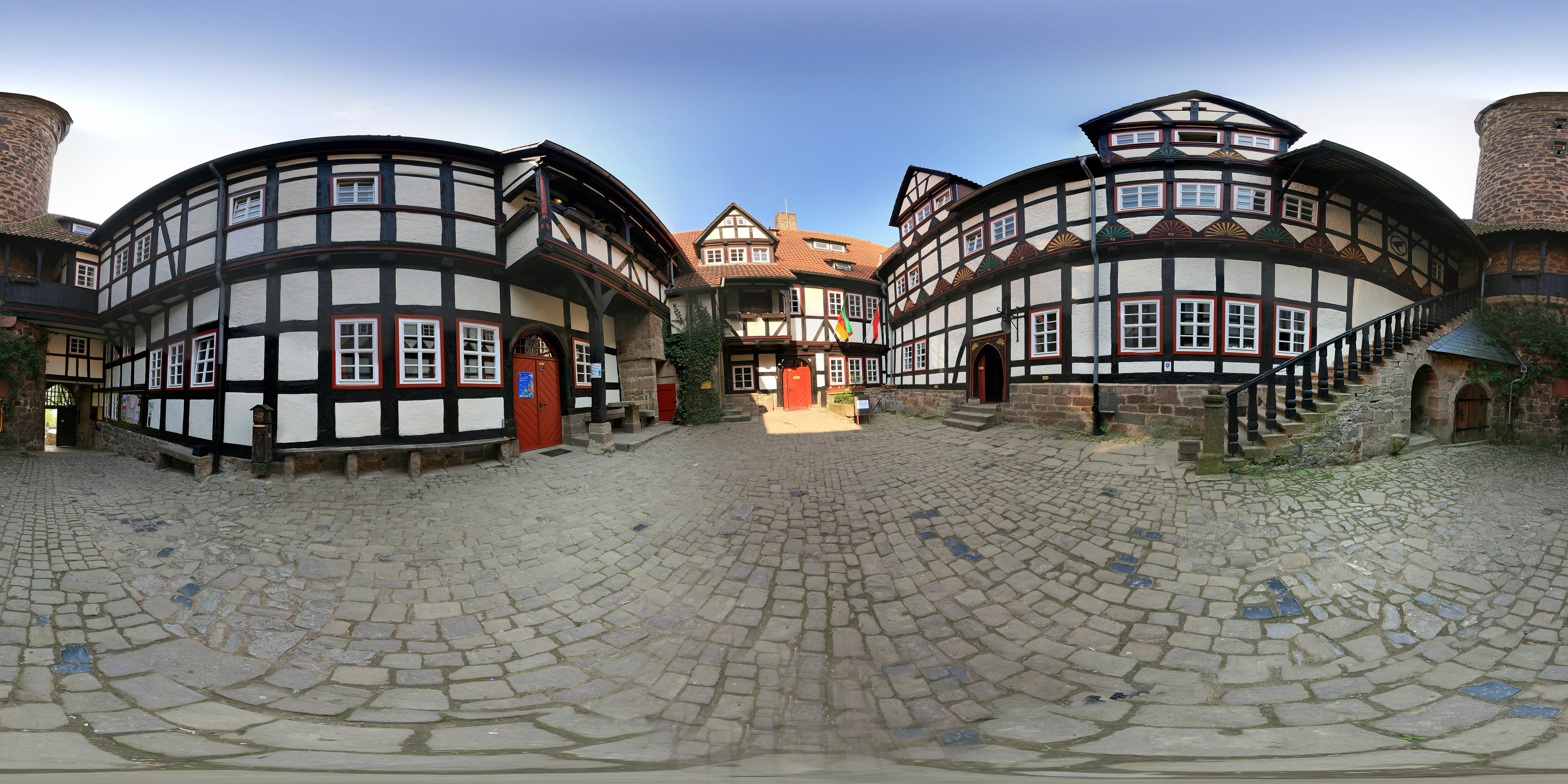 360° Kugelpanorama - Innenhof der Burg Ludwigstein bei Witzenhausen.