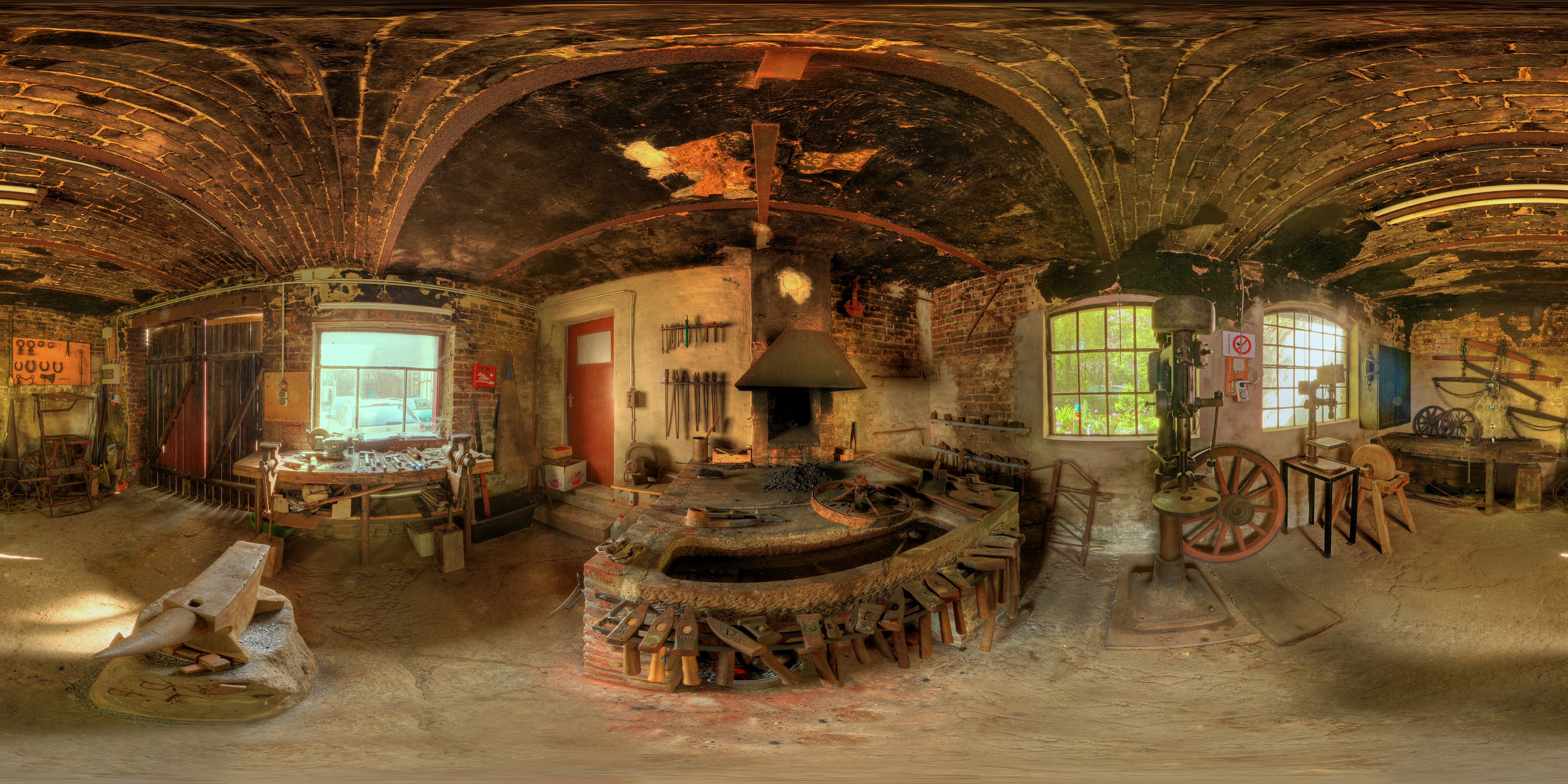 Direkt an der Hauptstraße in Heckershausen findet man die historische “alte Schmiede Thielemann”. Drei Generationen haben hier gearbeitet, dann stand sie viele Jahre ungenutzt - heute ist sie das Herzstück der Projektarbeit von dem Geschichtskreis Heckershausen. In vielen Arbeitsstunden wurde der Urzustand der Schmiede wieder hergestellt. Nun lodert das Feuer in der Esse wieder, und an manchen Tagen öffnet die alte Schmiede ihre Türen auch für Besucher. Link: www.geschichte-ahnatal.de/html/schmiede.html 360° Kugelpanorama - Canon 30D mit Sigma 10mm - 3 Reihen mit 4-8-4 Fotos, erstellt mit Panomaxx. das Kugelpanorama kann man hier ansehen: www.360cities.net/image/the-old-forge-thiehlemann-ahnatal...